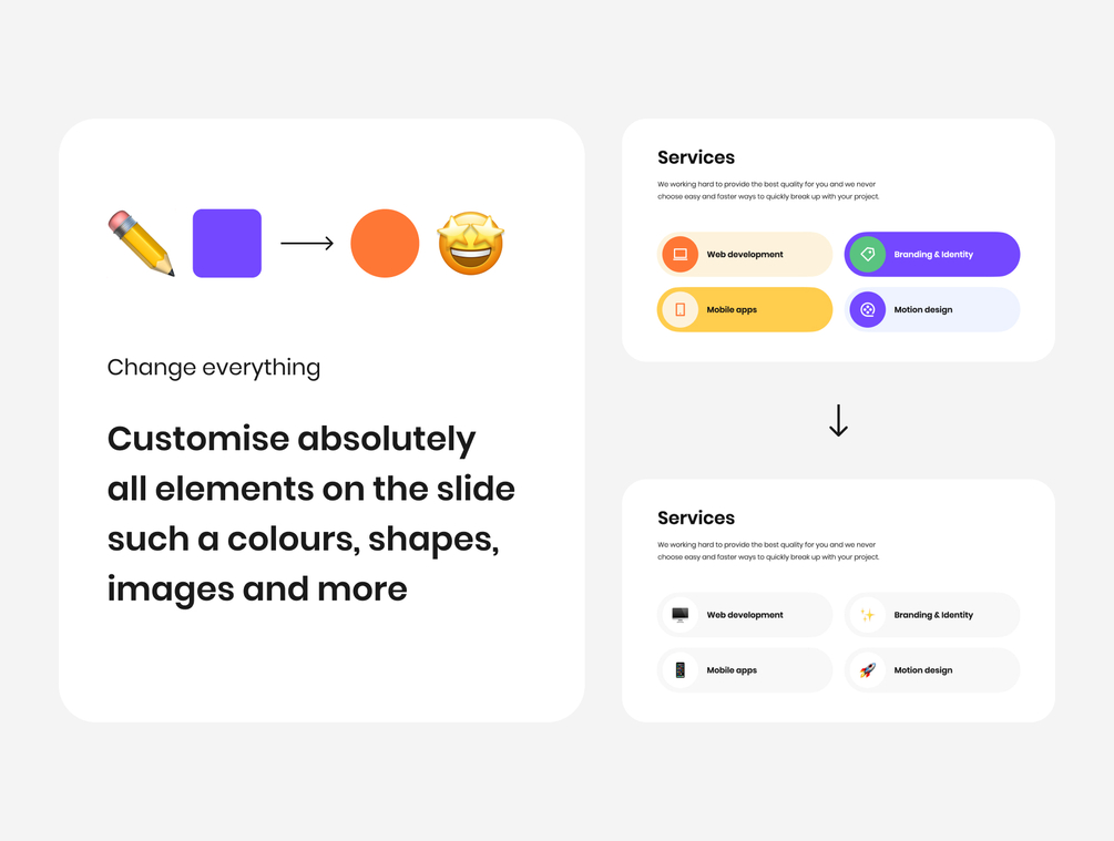 Customize any element on the slide such as colors, shapes, images and more!